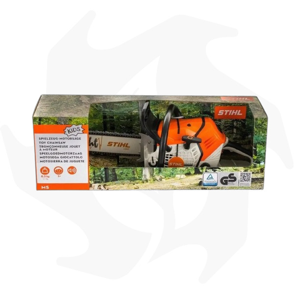 Motosega Stihl giocattolo per bambini, catena girevole e suono del motore GS