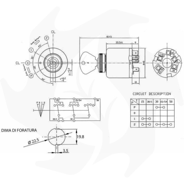 Quadro avviamento con preriscaldo, 4 posizioni chiave, chiave estraibile nella posizione P-0. Cobo 14.112.000