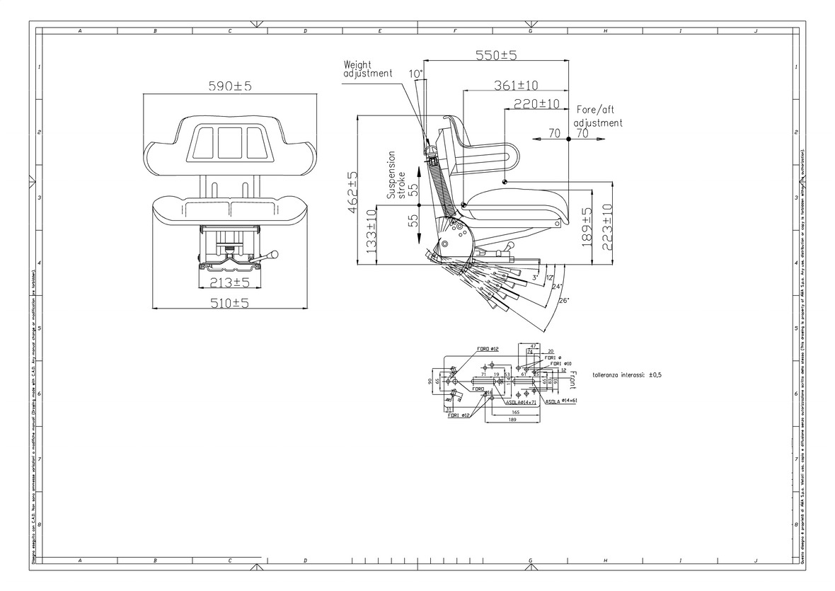 Il sedile dispone di diversi fori sulle guide per renderlo compatibile con trattori Fiat, Landini, Massey Ferguson e Lamborghini.